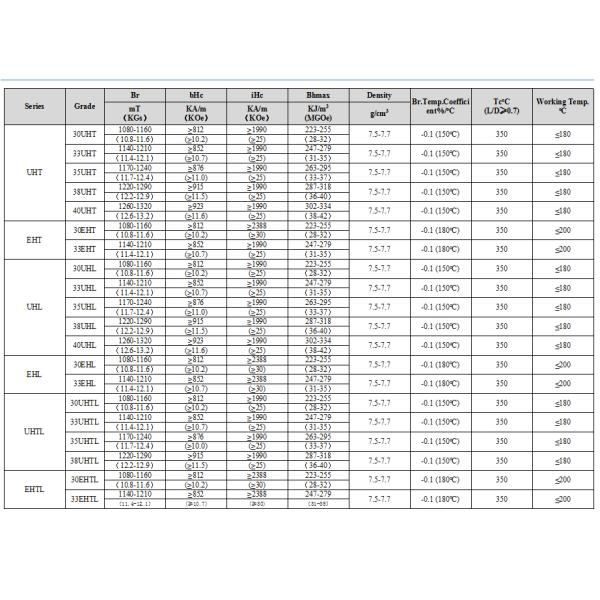 is standard temperature neodymium. The temperature ratings are standard (no designation) - M - H - SH - UH - EH.